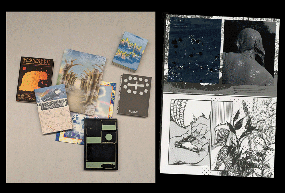 Séverine Bascouert and Sammy Stein often work together. The results of their research take the form of fanzines or books, collages, and installations. Through writing, archival documents, comics, and photos, they produce narratives based on both real and fictional events. In 2014, accompanied by other artist friends, they founded LAGON, an annual bilingual magazine focusing on new forms of graphic storytelling. In 2025, a new series of zines has been launched. In France Atlantide Séverine Bascouert and Sammy Stein explore places occupied by individuals whose ideas, beliefs, convictions or visions transcend common reason.